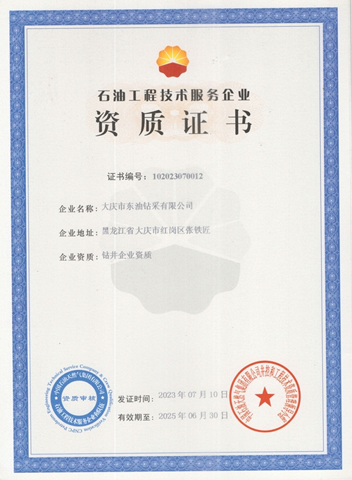 大慶東油鉆井企業(yè)資質(zhì)證書
