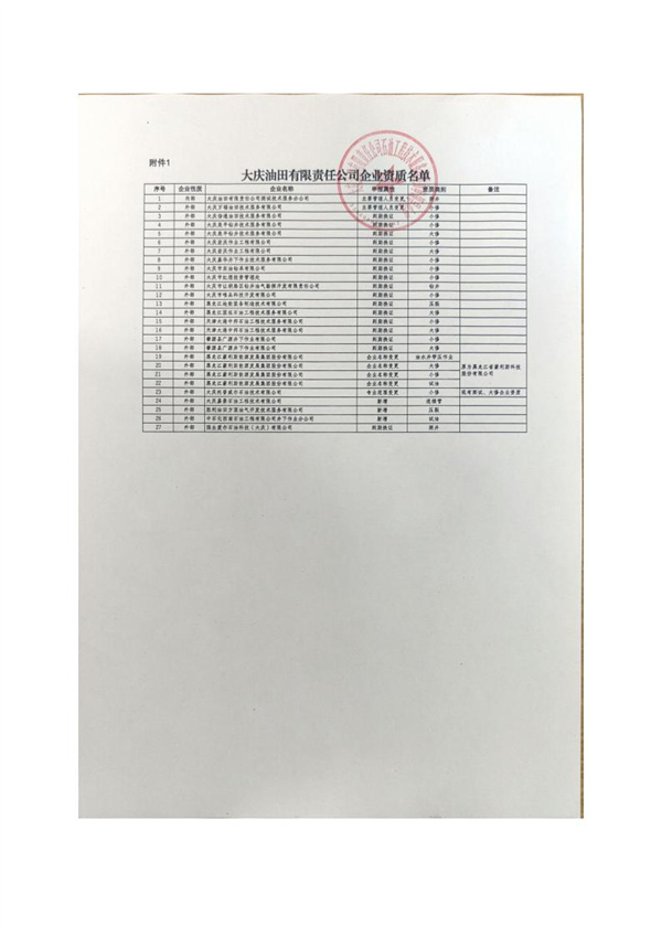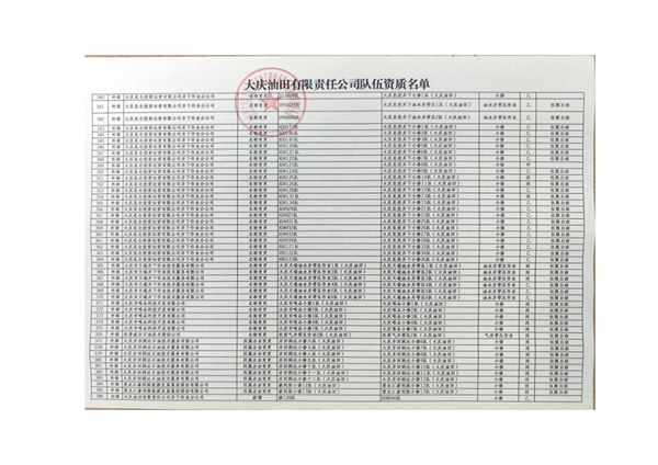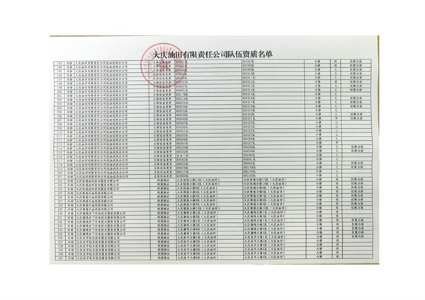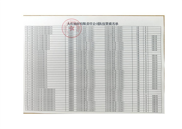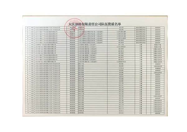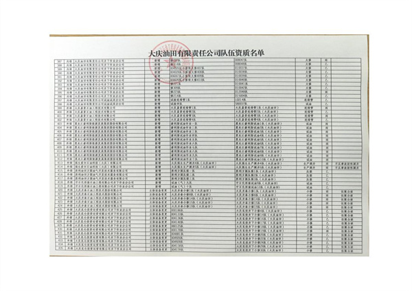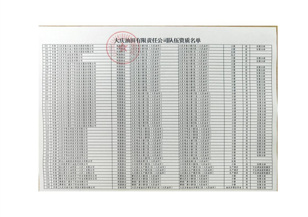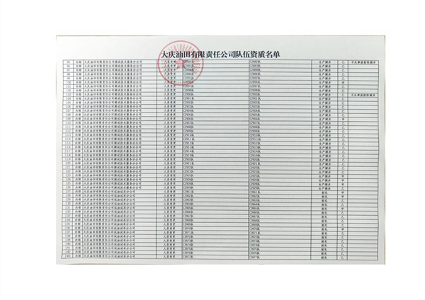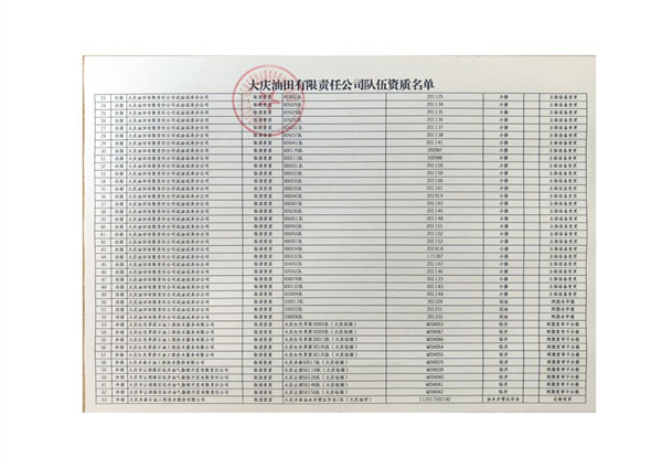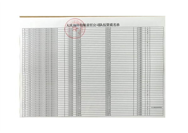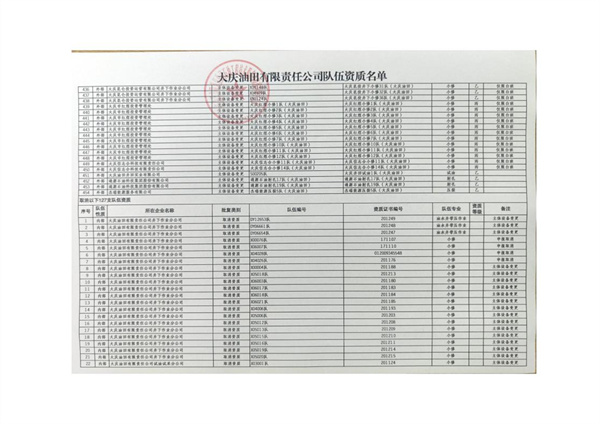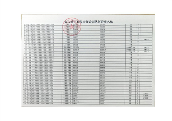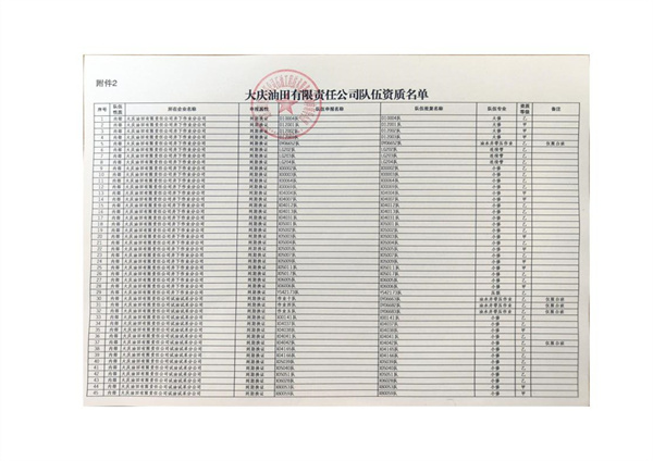 大慶東油15001隊(大慶油田)資質(zhì)證書