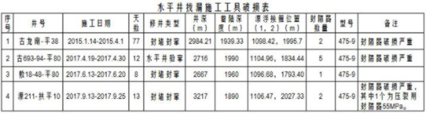 水平井找漏施工工具破損表,張新凱報導(dǎo)