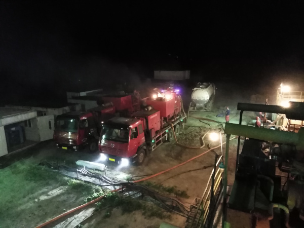 2018年7月30日夜晚到31日凌晨,大慶市東油鉆采有限公司固井隊(duì),對(duì)這口井進(jìn)行了固井施工。注灰1240袋,替清水31.6方,施工**順利,一切正常。